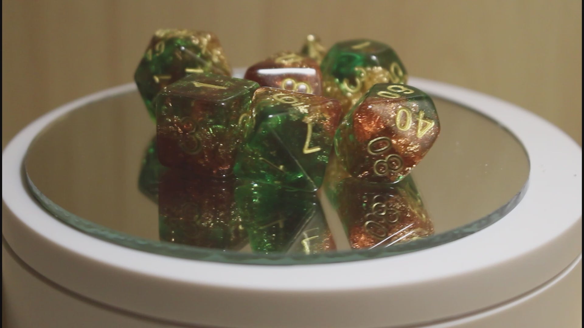 Each die is made by hand, meaning small variations and unique details make every set truly special. No two Rootbound sets are ever exactly alike! I do my best to make them perfect for you. Subtle variations, microbubbles, or slight imperfections are a natural part of the craft. These create a unique soul of small-batch dice, making every piece of one of a kind artifact. The set you receive may look slightly different than the set you see in pictures.
